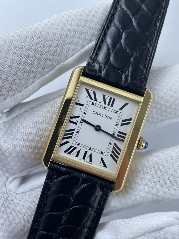 (준비완료/특급배송)NO.1242/K11공장 까르띠에 탱크솔로 27MM 가죽 옐로우골드